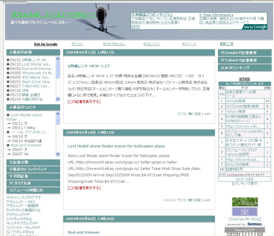 なんと、大ちゃんとこの旧ブログがトップ!!