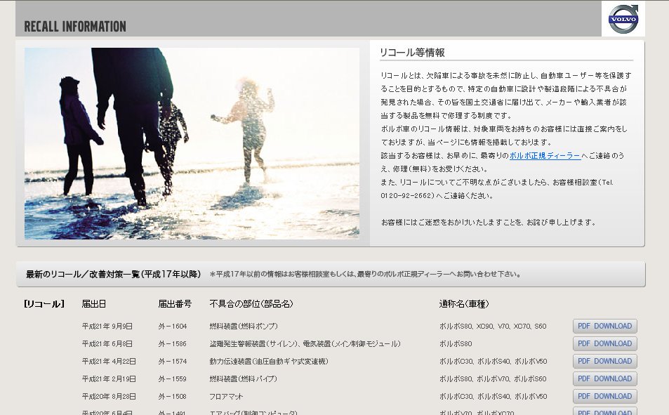 「あなたのボルボがリコール対象車になってます。お近くのボルボディーラーで部品の交換をお願いします」