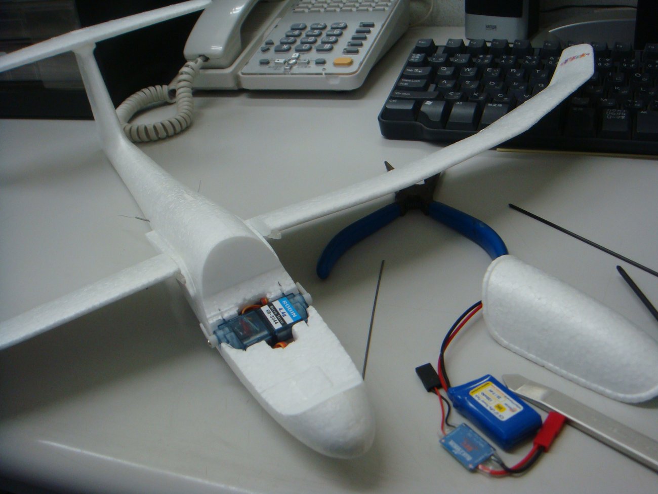 ・・・・もう1個サーボ乗っけてフックで離脱できるようにしようかな・・・・コバンザメのように誰かの機体にくっ付いて。(爆)