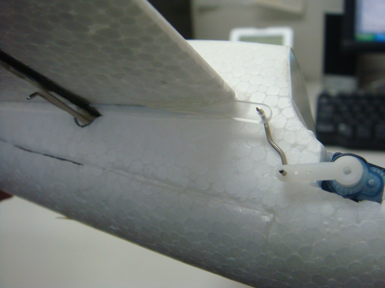なんて呼ぶのか解りませんが、2サーボで主翼全体を捻る??Vテールミキシングが主翼に付いた感じ。