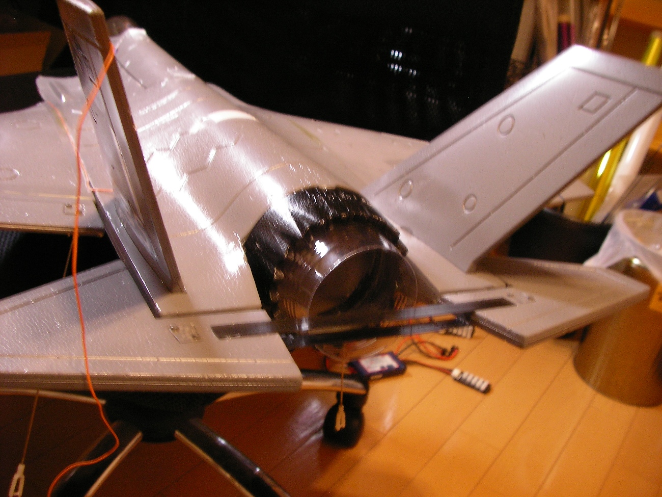 さらにこんどはエレベーターを1サーボ追加で動かし、連結のカーボンフラットバーでスラスト効果も兼ねる。