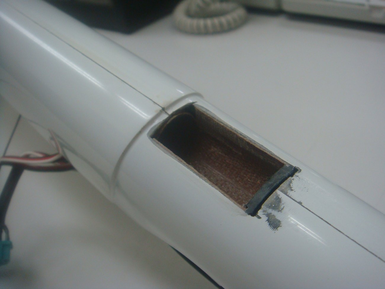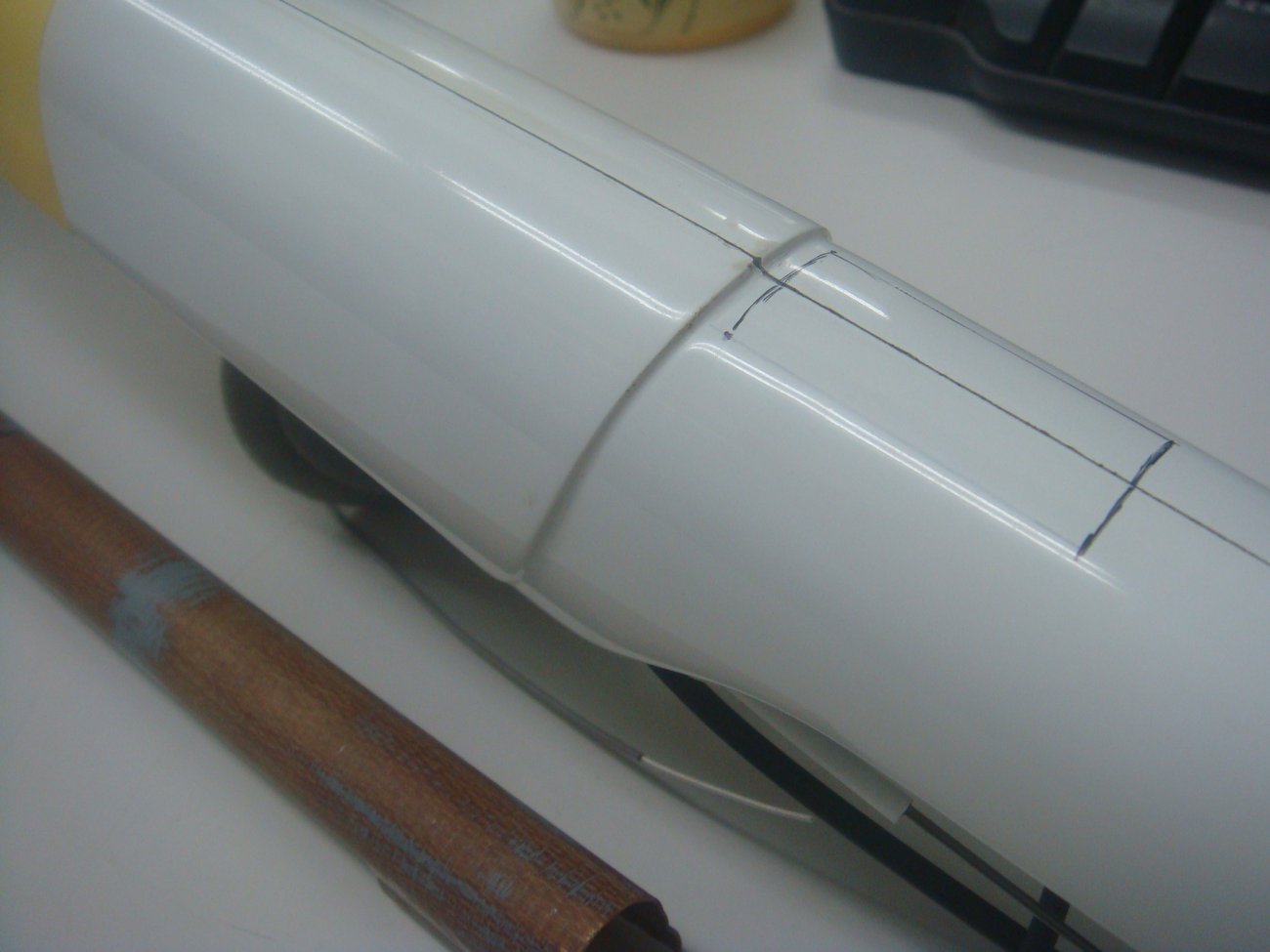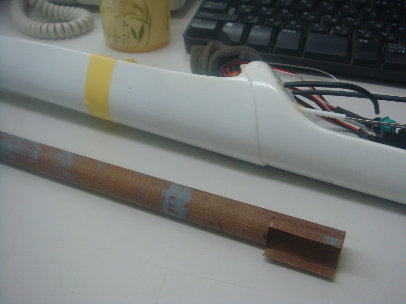 胴体下部(アウターパイプが被さる所)より挿入できるように穴をあけて。