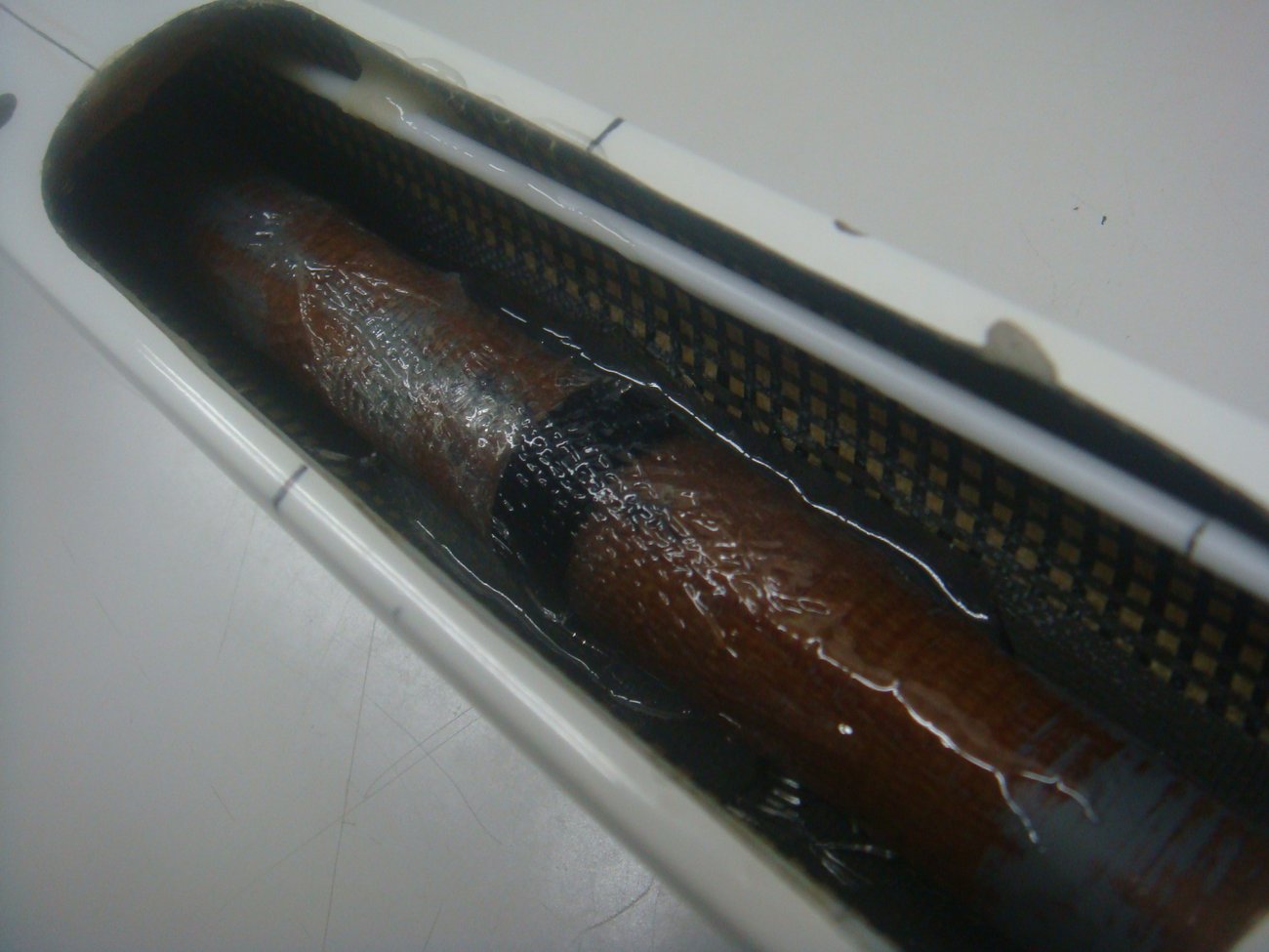 1本物では胴体内部に入らなかったので2分割にて内部で繋ぎ合わせて接着。