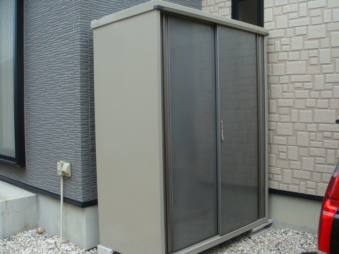 昼からは注文していた「物置」のキット?が着弾して、その組立て作業。。。なんとか出来上がりました。