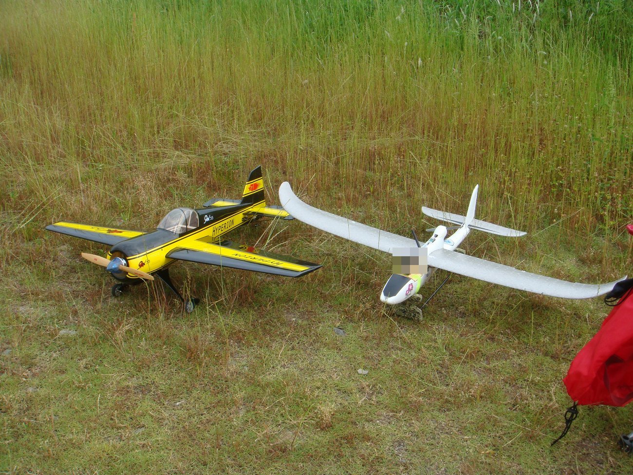 「Hyperion YAK55 25e」は低空で失速させてしまい墜落。。。。でも草地の上でほぼ無傷でした。