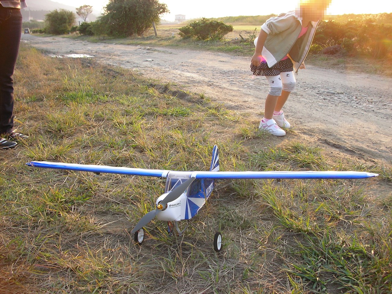 奥様と娘は少しはなれたグラウンドでバドミントンで遊んでいます。。。。。まったくRCには興味が無いようです。。。