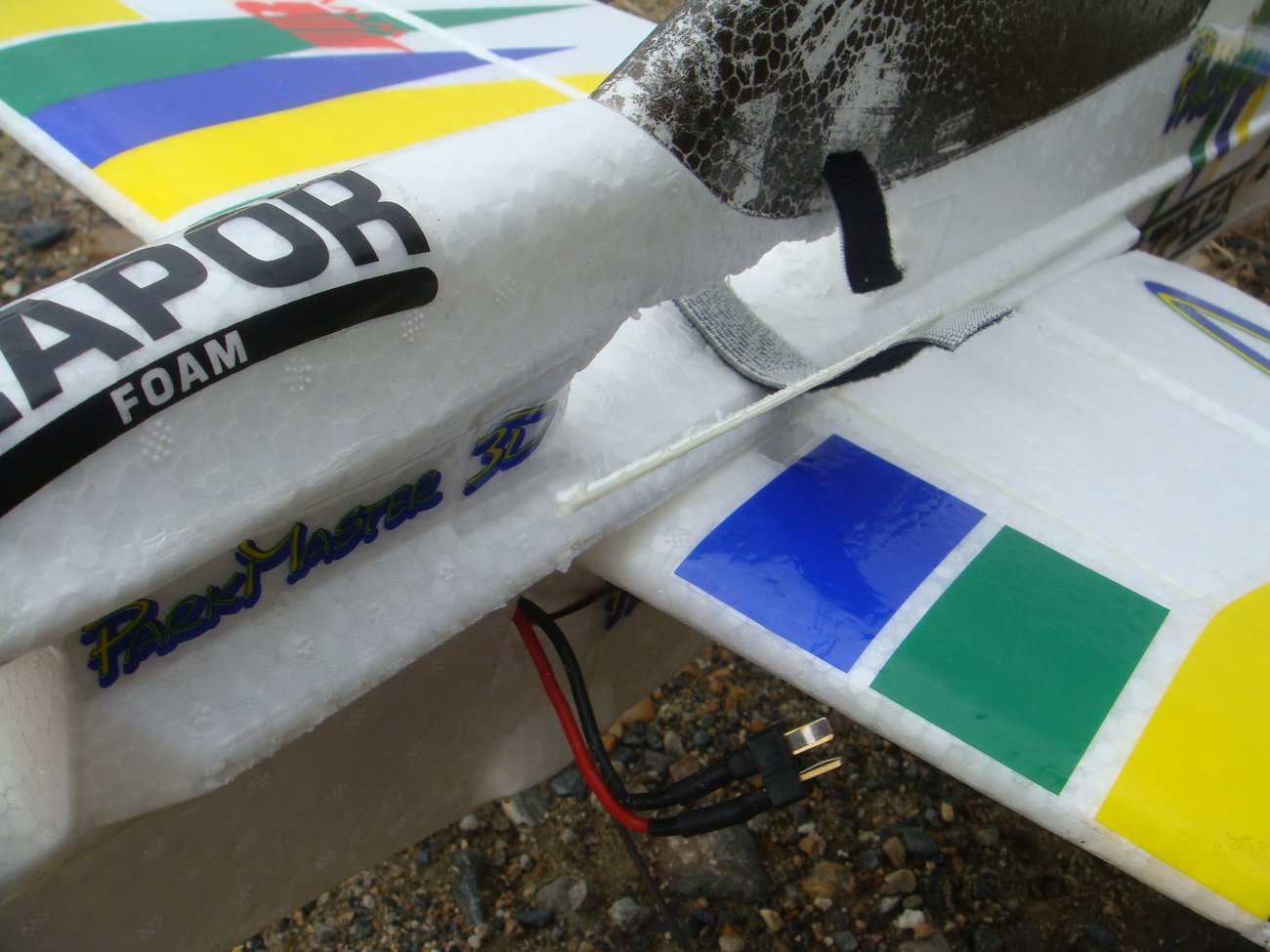 胴体側面の補強グラス棒が両側とも剥れていました。これが原因か!!??おまけにエルロンの動翼ヒンジが片方外れてるし!(爆)