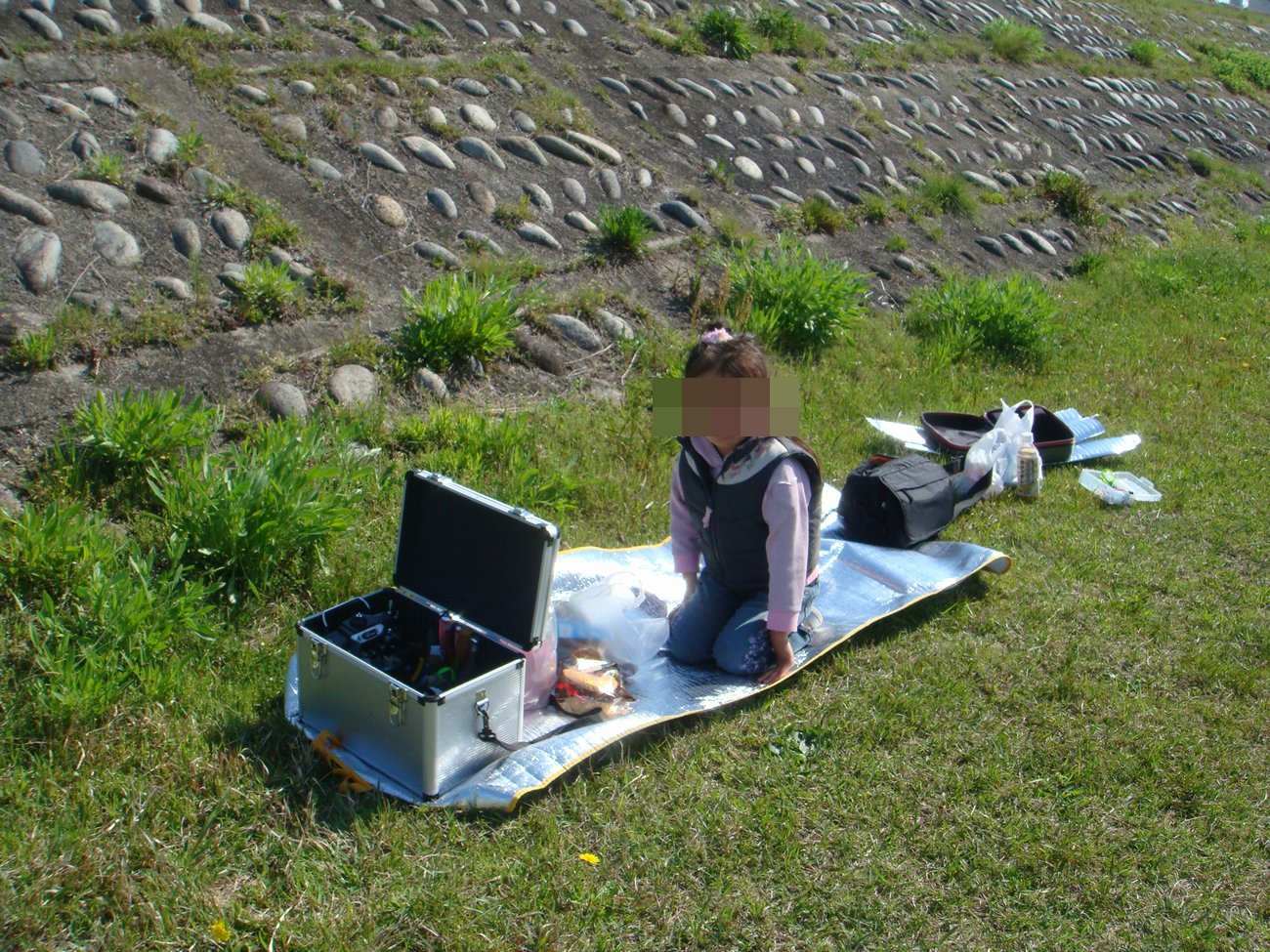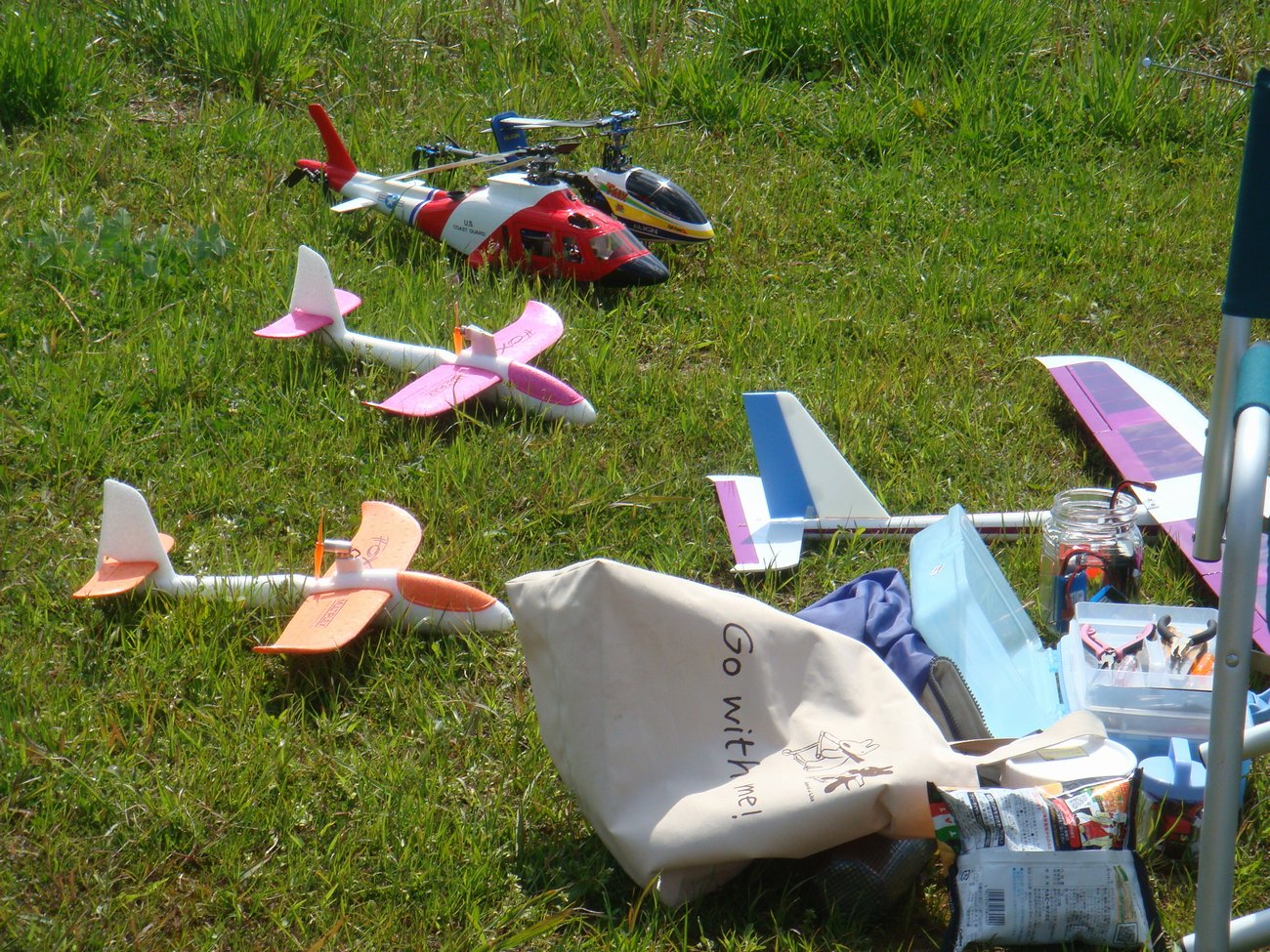 まささんがSAL新作機(また??!!)の調整飛行をするとのことで子供を連れて遊びに。