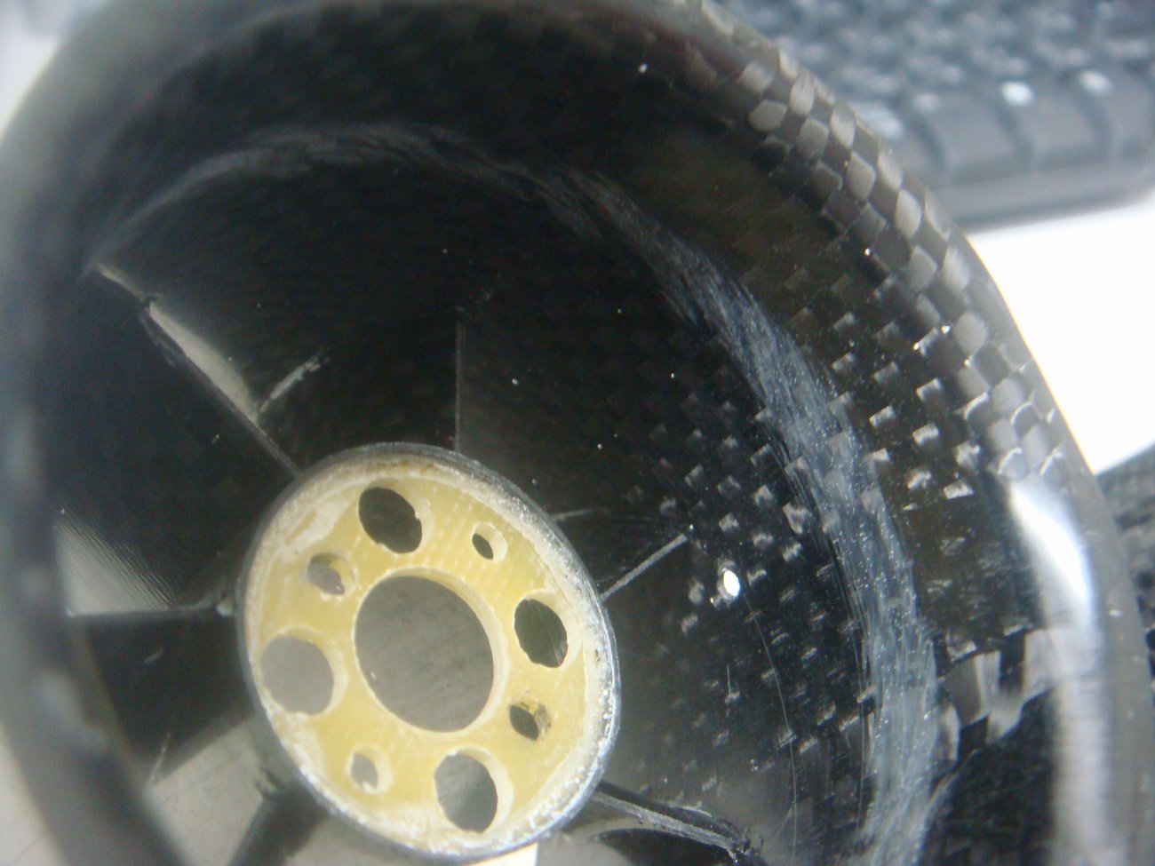 EDFの自作固定パーツも少し剛性不足を感じたので2枚のブラケットの間に縦方向のカーボン衝立を追加。