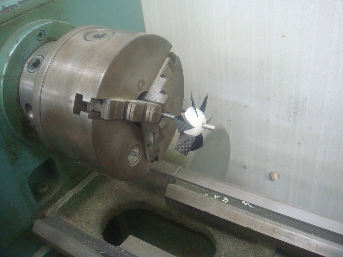 4.0mmのステンレス棒に仮固定(圧入)して、旋盤にセット。