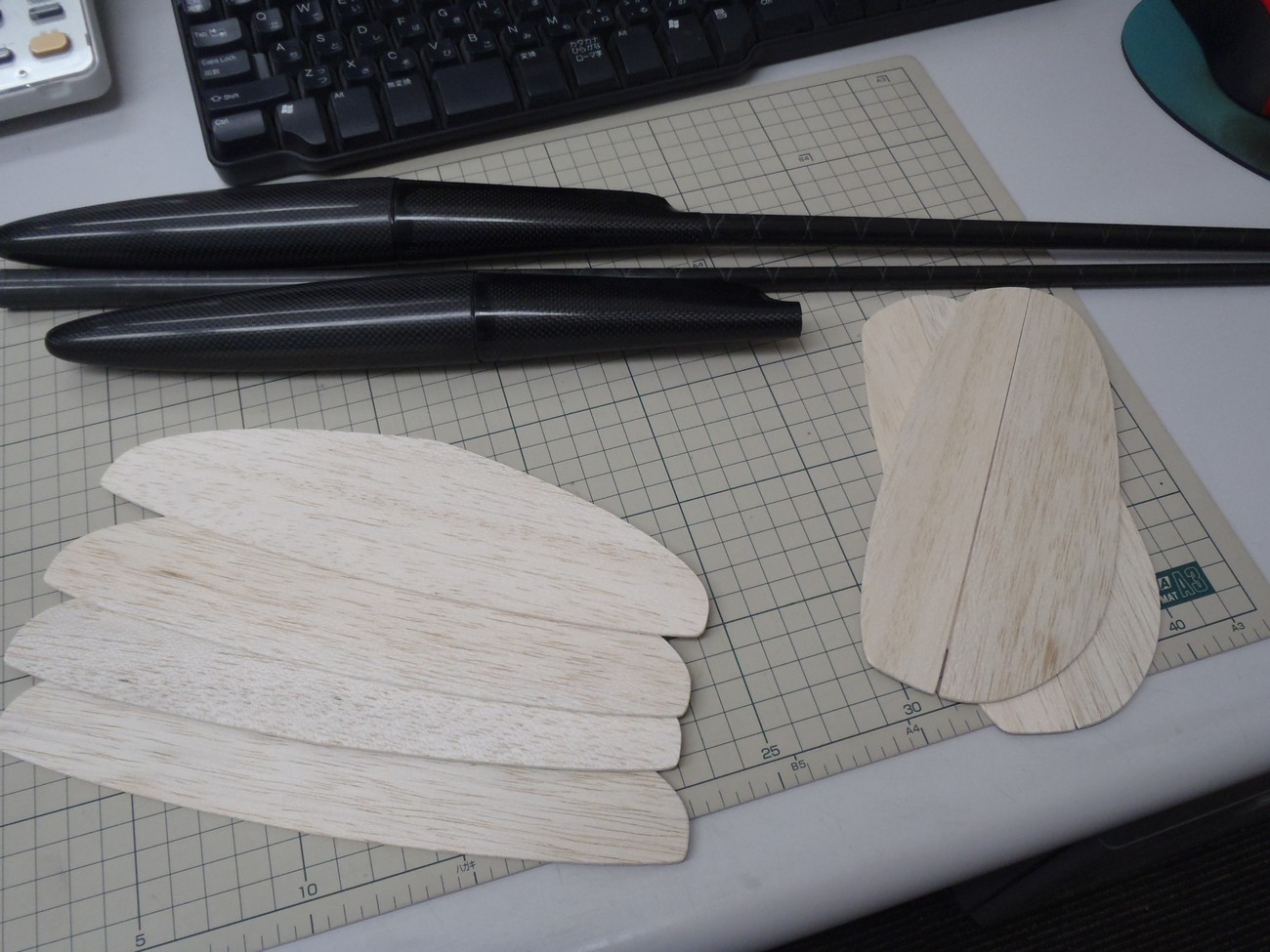 尾翼が何枚もあるのは・・・・買ってきたバルサ材で取れるだけ取ったから。