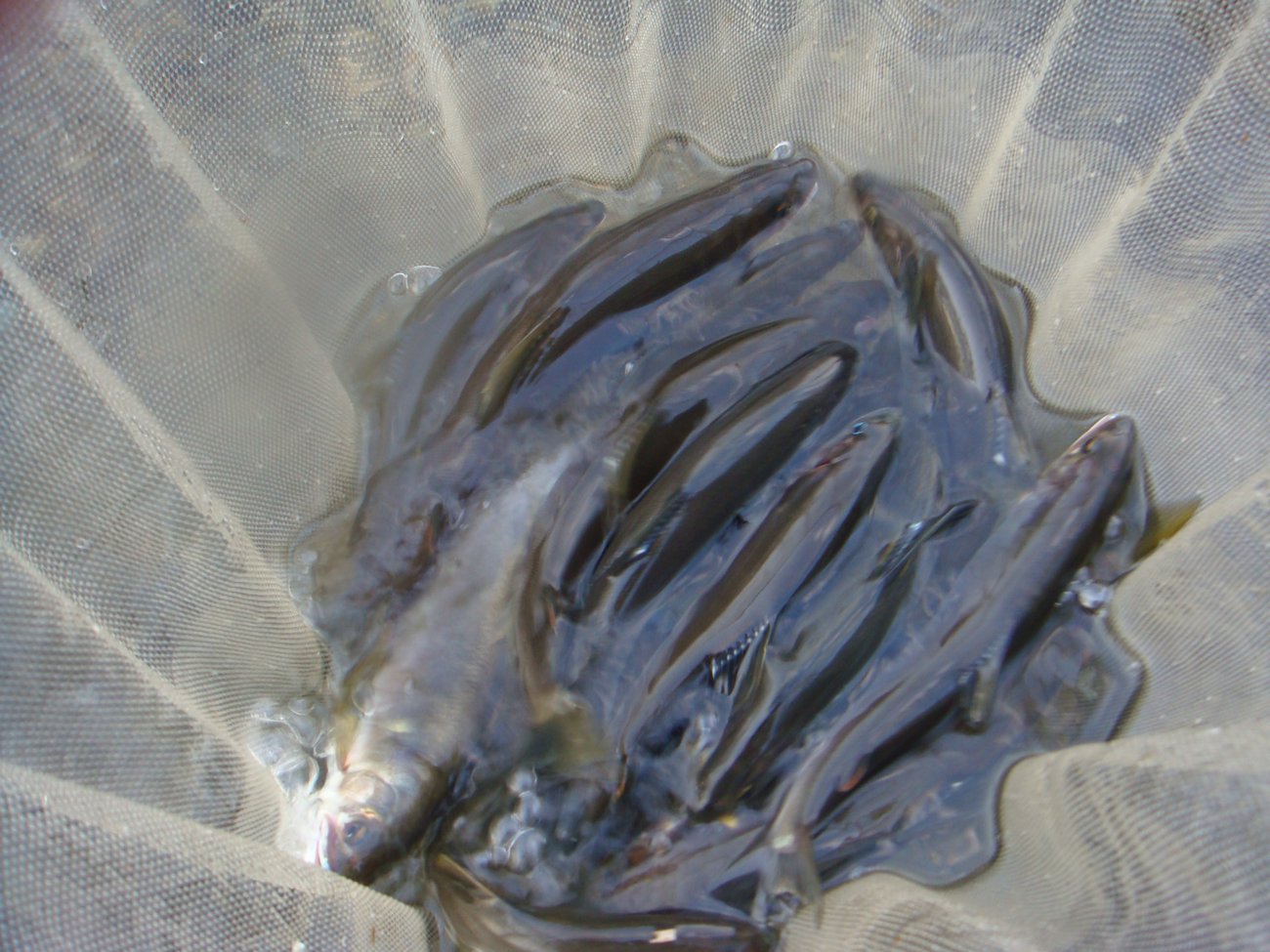 次は1.5mほどの水深のトロで静かに泳がせてやっと掛かりだしました。