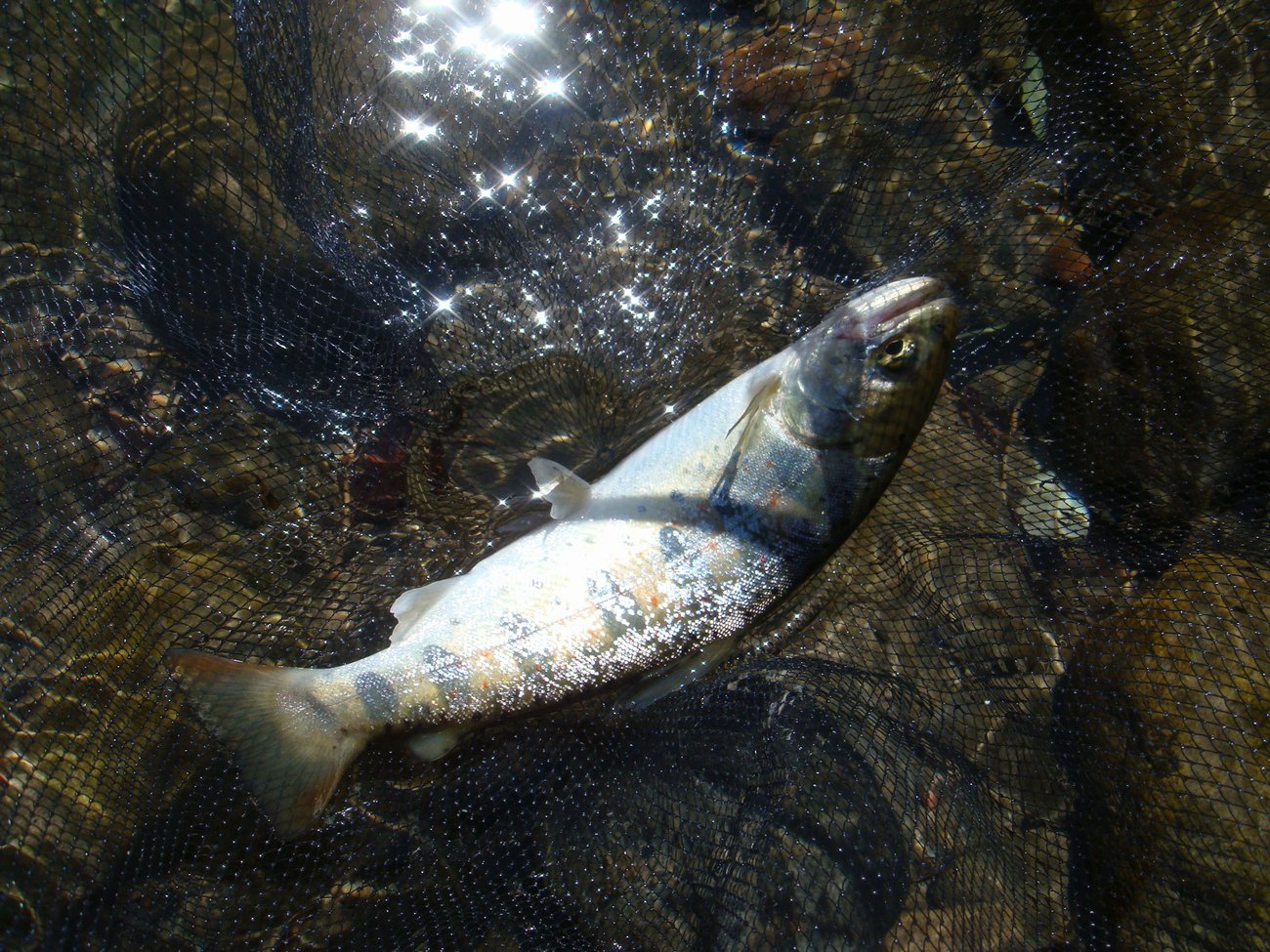 ようやくキープサイズゲット。魚体のキレイなこいつは天然アマゴ。(ここは稚魚放流のみ)