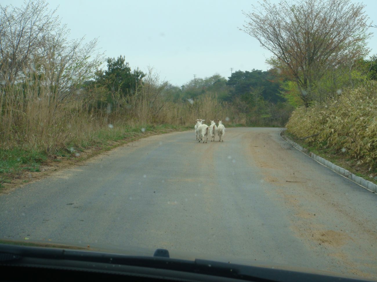 ヤギの家族??が行く手をさえぎって・・・・・なかなかどいてくれません。(笑)