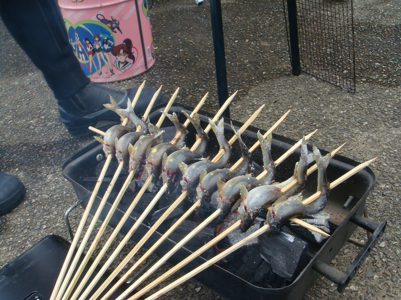 >川原で死にそうな奴を3枚におろして熱い石の上において置きますと、これまたいい酒の摘まみになります。